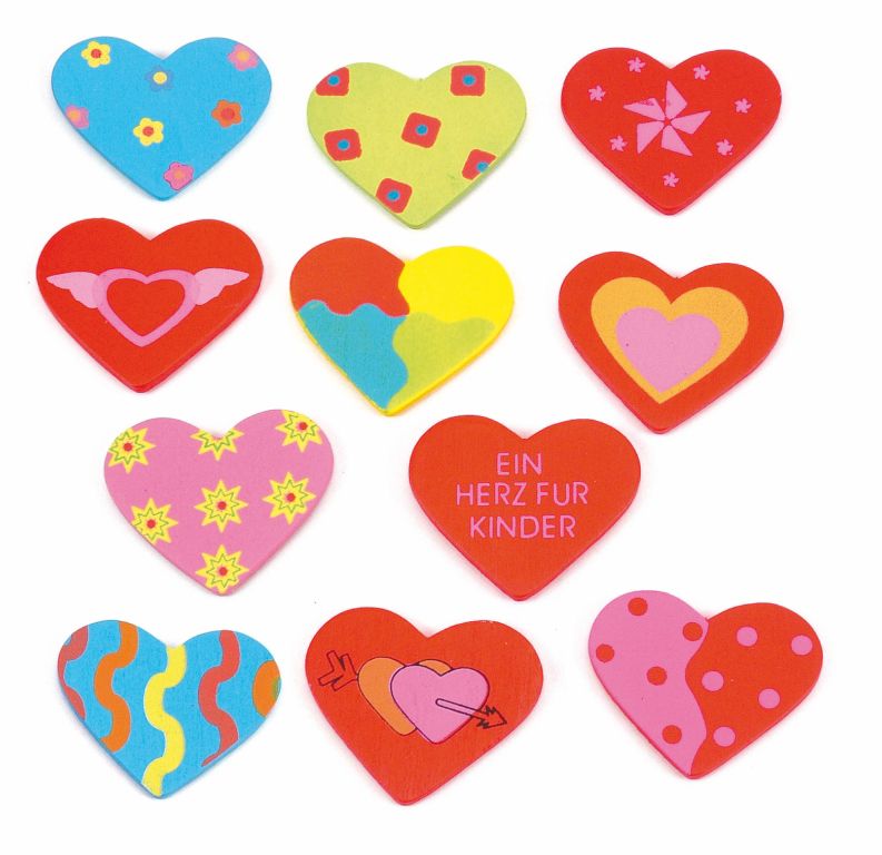 Wooden sticker - heart,displ. 24 pcs