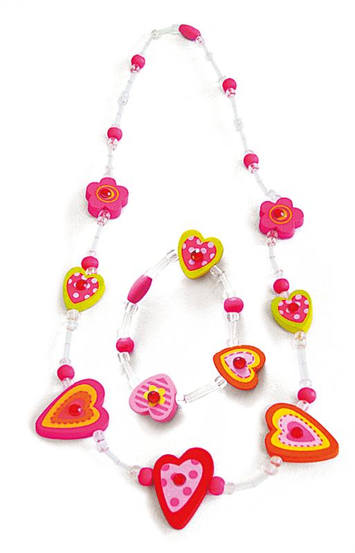 Necklase and bracelet set - hearts, set 6pcs